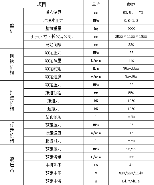 1. 履帶行走,大大提高移鉆、穩(wěn)鉆的效率,顯著減輕工人的體力勞動(dòng)強(qiáng)度;